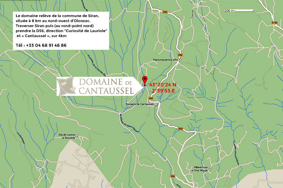 Plan d'accès au Domaine de Cantaussel en Minervois