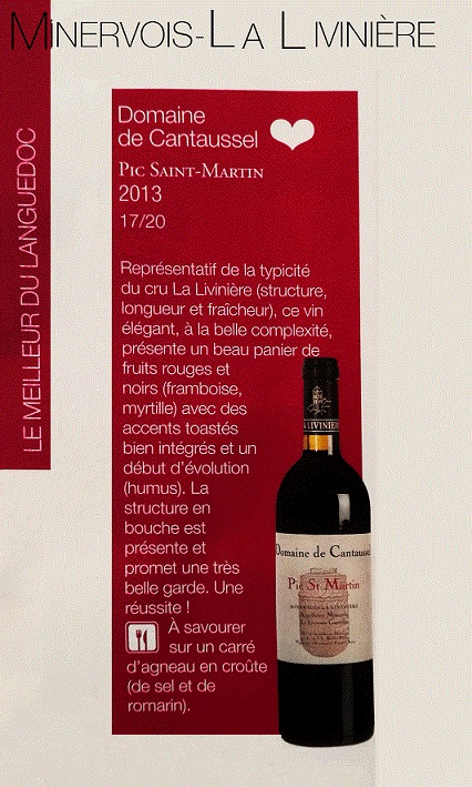 17/20 Coup de Coeur pour le Pic St Martin 2013 (La Livinière) parmi les meilleurs vins du Languedoc !